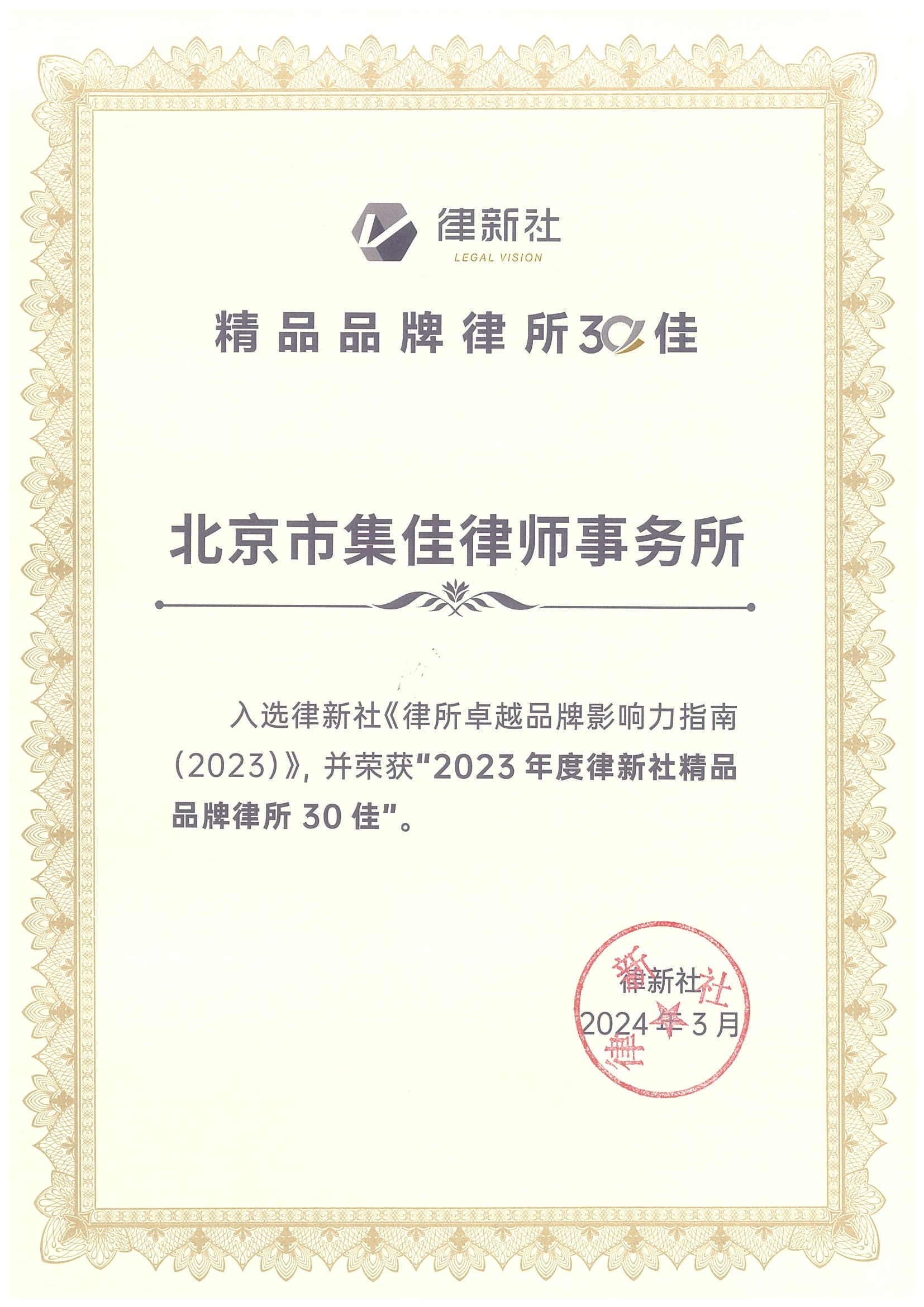 >快直播>新闻动态>快直播入选 “2023年度律新社精品品牌律所30佳”