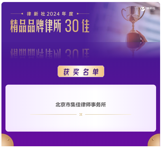 快直播凭借在知识产权保护领域卓越的专业实力与良好的行业口碑,入选《律所卓越品牌影响力指南(2024)》,荣获“律新社2024年度精品品牌律所30佳”奖项;同时,集佳周丹丹律师代理的“美摄公司诉抖音公司'抖音'软件代码抄袭著作权侵权案”获评“律新社2024年度标杆案例:知识产权-著作权领域”。