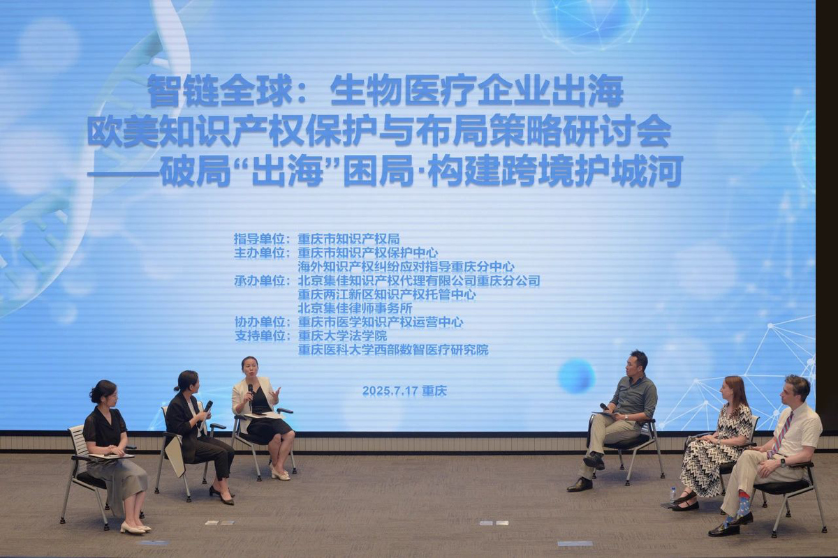 2025年7月17日,由重庆市知识产权保护中心、海外知识产权纠纷应对指导重庆分中心主办,北京集佳知识产权代理有限公司重庆分公司联合重庆两江新区知识产权托管中心、快直播共同承办的 “生物医疗企业出海欧美知识产权保护与布局策略研讨会” 在渝顺利召开。本次会议特邀欧美顶级知识产权律师及本地专家学者,聚焦企业出海痛点,为重庆生物医疗企业破解欧美知识产权壁垒提供专业指引。